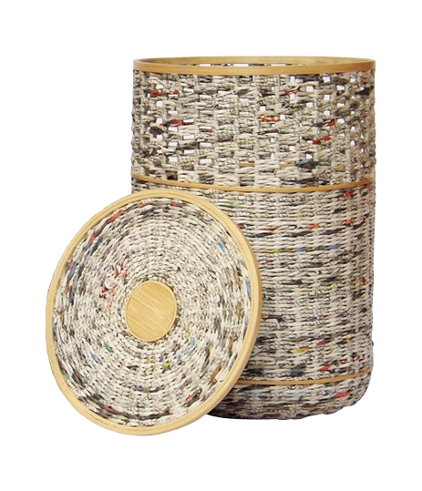 These beautiful and ethical storage baskets are handmade from newspaper in Indonesia.