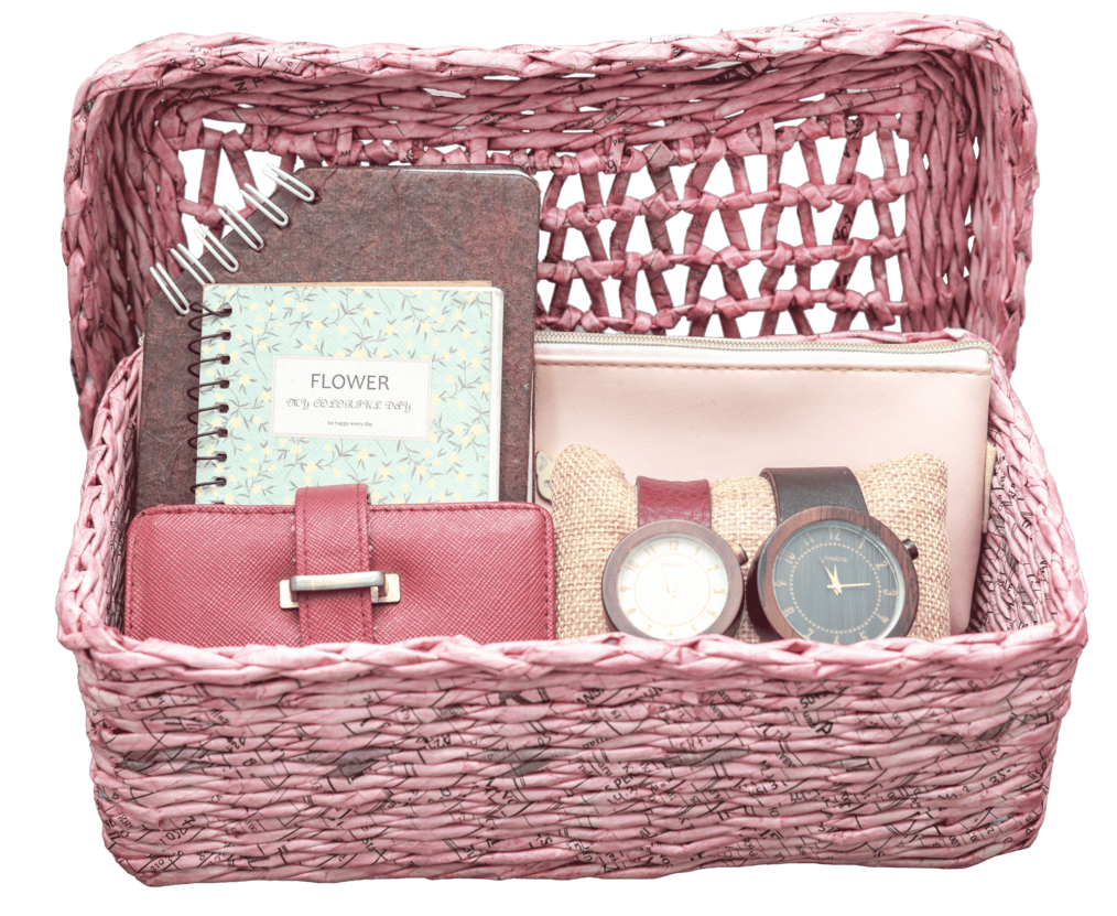 Tarapti is a storage box for knick-knacks on the table, so that the table looks neat and well organized.It is made of woven paper with a unique woven motif. The word Tarapti in Sundanese means that everything has been carefully prepared. The naming tarapti was inspired by the weaving preparation procedures carried out by weavers, where the equipment and weaving materials are prepared in an orderly and organized manner so that the weaving process can be more effective.