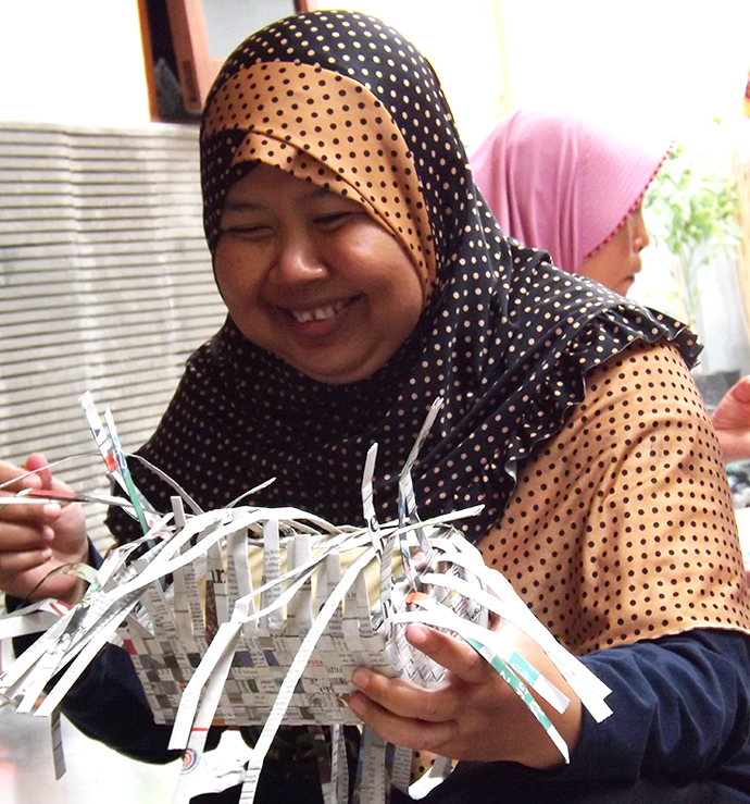 In our perspective, the business we established is the way to achieve our goal, which is to bring financial, social, and environmental harmony in community we empower, the artisans. Most of them are housewives from low income household and considered being suceptible if some unprecendented crisis happen with their families. Our activity locates in Sindangsari – Bogor and Palmerah – West Jakarta where the number of low income households are considered relatively high.