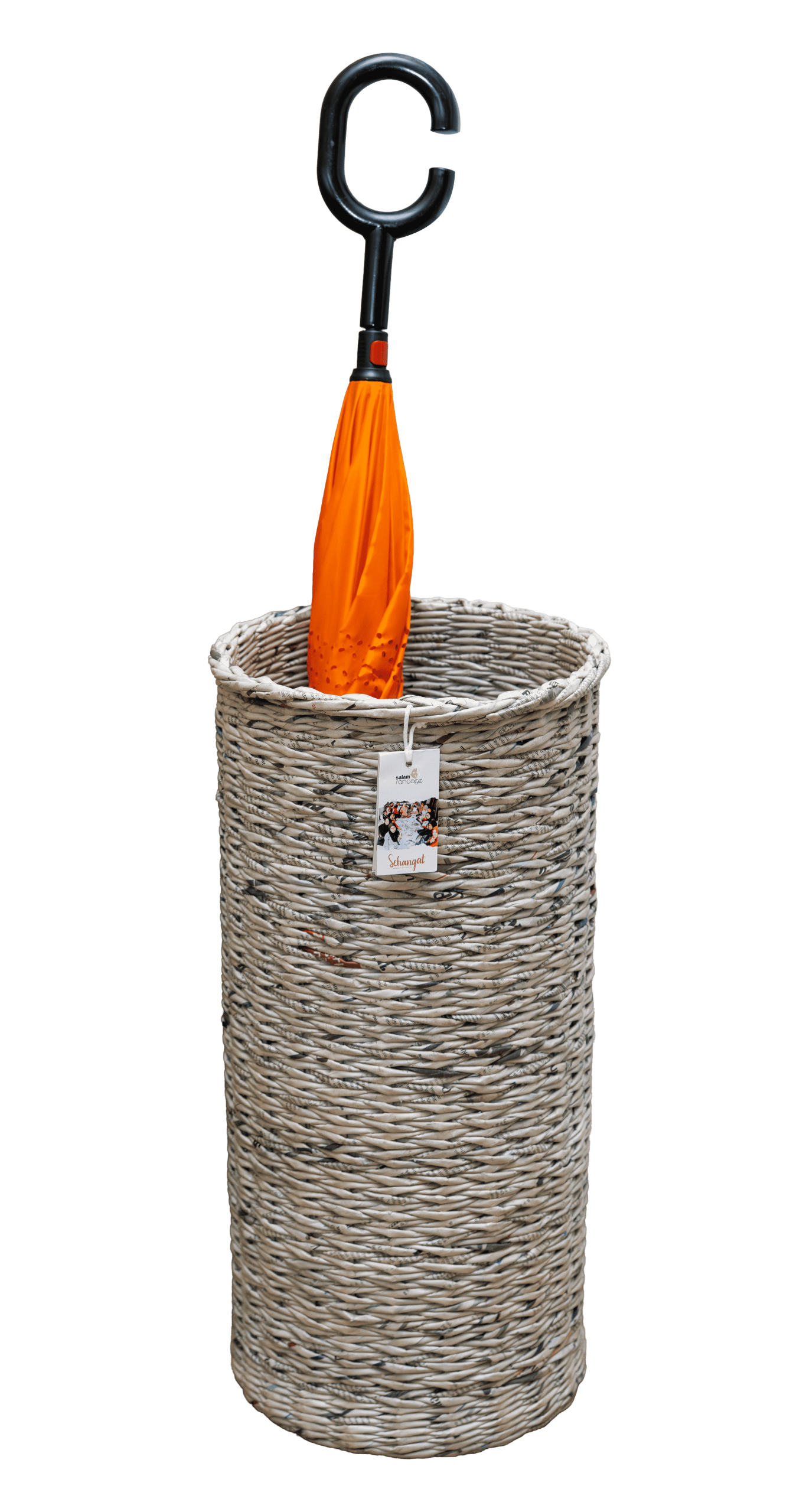 Junun is a tall basket that can be used to store umbrellas or cover large flower vases.